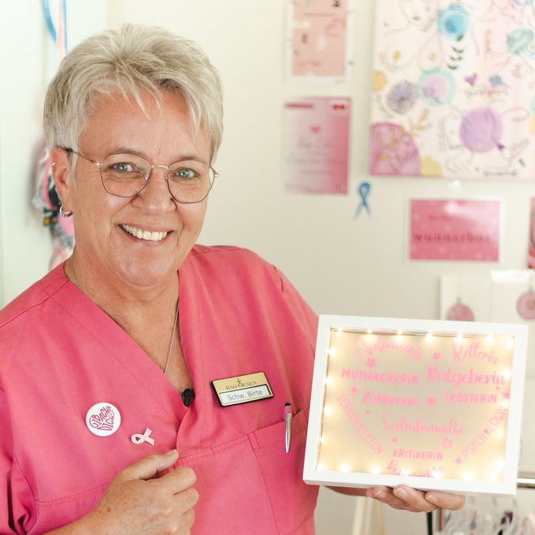 Als Breast Care Nurse (Pflegeexpertin für Brusterkrankungen) und Pelvic Care Nurse (Pflegeexpertin für gynäkologische Erkrankungen) berate, informiere und unterstütze ich täglich Betroffene mit diesen Erkrankungen. Ein Großteil dieser Arbeit umfasst aber die psychologische Betreuung und Hilfestellung.